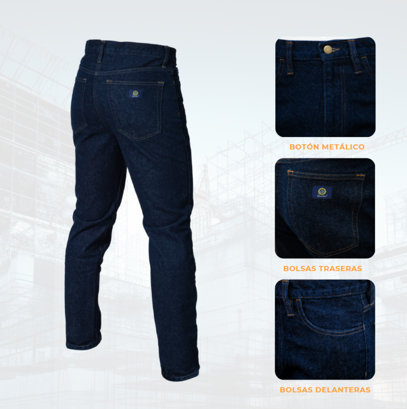 PANTALÓN DE MEZCLILLA, EN CORTE RECTO, BOLSILLOS AL FRENTEY TRASERO, PRETINA CON PRESILLAS, BOTÓN Y CIERRE METÁLICO