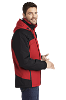 Exterior de nailon 100% ripstop con detalles de nailon Taslan Forro del cuerpo 100% polar sherpa de 6.8 onzas 100% polirelleno Clasificación de impermeabilidad de tela de 1500 mm. Costuras completamente selladas para mayor protección impermeable. Forro de poliéster en las mangas para poner y quitar fácilmente Capucha con cremallera Solapa exterior contra tormentas de longitud completa Cuatro bolsillos con cremallera Puños con lengüeta ajustable y cierres de gancho y bucle. Bolsillo con cremallera en la manga izquierda Port Pocket™ para acceso a la decoración